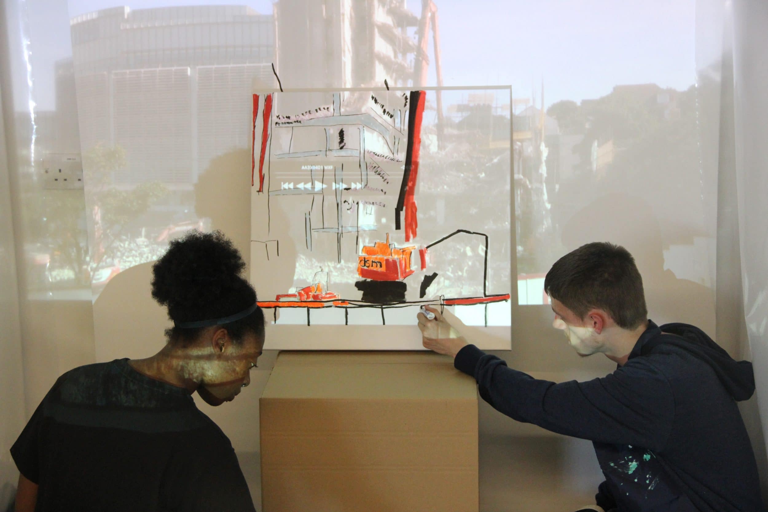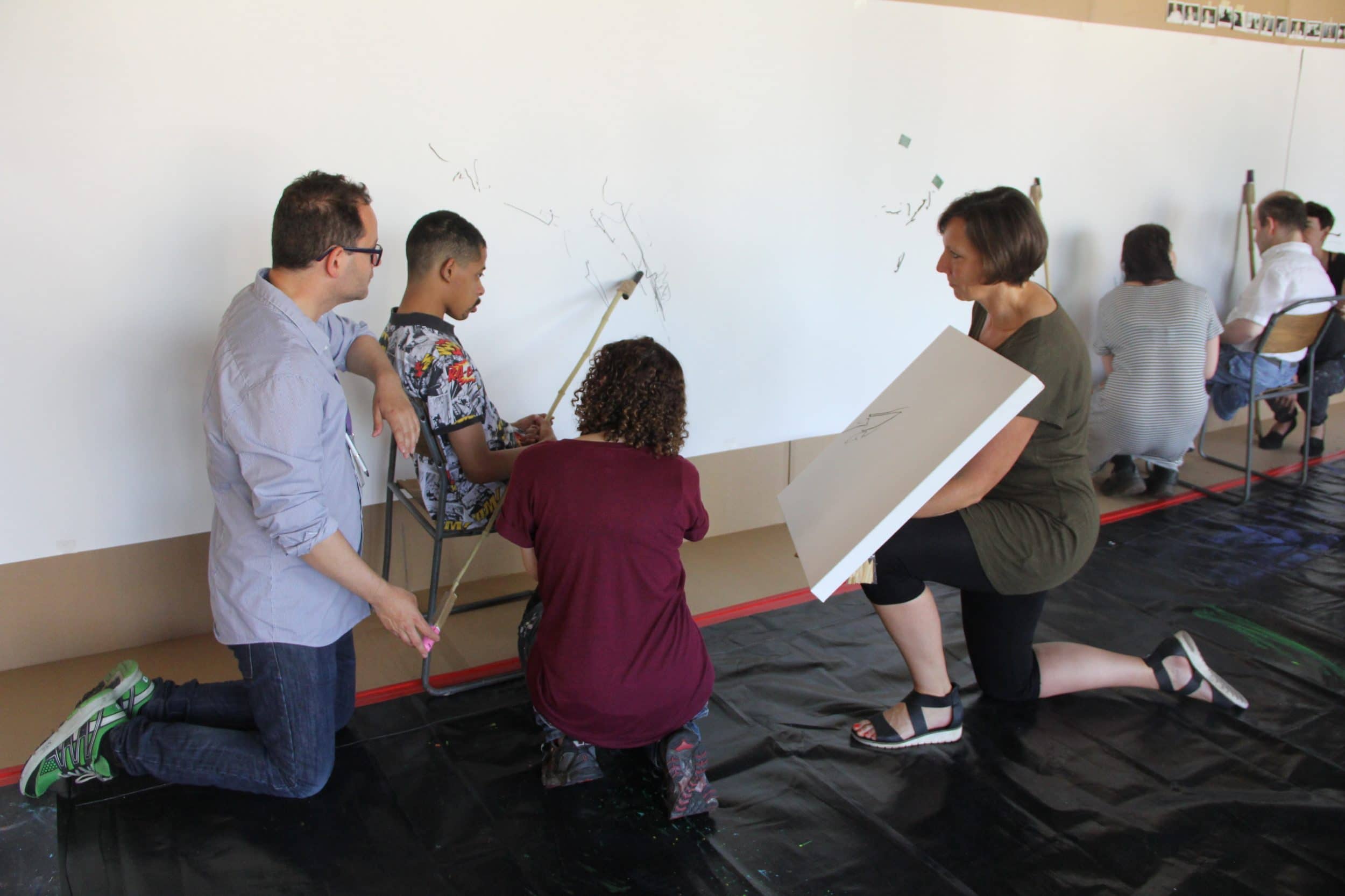In June the Project Art Works team joined the Photoworks team in Brighton University to deliver the first Encounter workshops as part of the Explorers Project. The Encounters took place over two days and introduced the Photoworks staff to ways of working that can create real and lasting connections between people with complex needs and the cultural sector. An immersive environment was set up in the University studios. We were joined by participants and support staff from Downs View Link College, The Platform SE and The Scope Resources Centre, Brighton. The Photoworks team had the opportunity to work alongside participants, with the guidance of Project Art Works artists and the support staff, to explore and respond to the space in a creative way and develop methods of non-verbal communication.