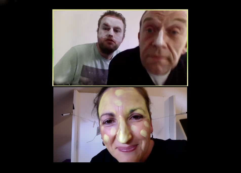 1.Lee, Paul and Georgie with face paints during a Zoom session.